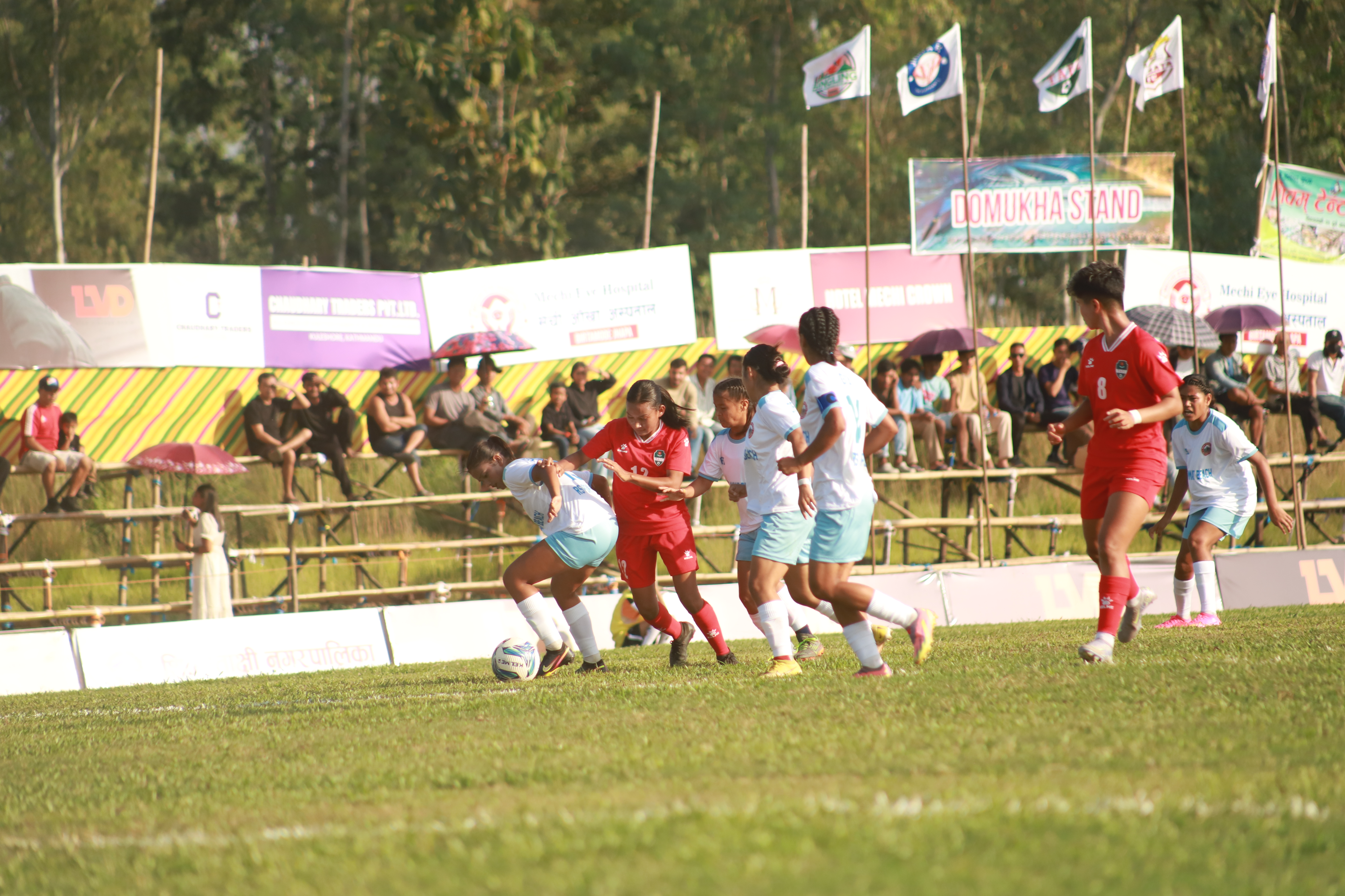 Tribhuwan Army Football Club delivered a resounding message of intent on Thursday, demolishing a hapless RS Pokhara FC 6–0 to secure their spot in the semifinals of the Jhapa Women's Gold Cup. From the moment the referee's whistle signalled the start, the departmental powerhouse asserted its dominance, seizing control of possession and setting a blistering pace that Pokhara could simply not match. Their superior organisation and unrelenting offensive pressure made for a lopsided contest under the Duhde Stadium lights. **The Goal Rush** The breakthrough arrived in the 16th minute. Following a free-kick earned when Usha Shahi was brought down just outside the penalty area by Deepa Rai, Jennifer Rana Magar rose highest to meet a precision delivery from Bimala BK, heading home for the opening goal. The Army doubled its advantage in the 33rd minute. Capitalising on a costly goalkeeping error, Bimala Chaudhary nodded in a close-range header after a cross from Hima Chaudhary. The unstoppable forward line struck again just before the break, as national team defender Bimala BK converted a corner kick with a powerful finish, making it 3–0 at halftime. The second half was a continuation of the Army's masterclass in offence. In the 85th minute, Bimala Chaudhary grabbed her brace, connecting neatly with a precise assist from Sanju Kumal. The onslaught continued moments later when Sharmila Thapa extended the lead to 5–0, slotting home a cross from the impressive Bimala BK. The crowning moment belonged to the star of the night. In stoppage time, the irrepressible Bimala Chaudhary completed her hat-trick with a clinical header off an Anita Lamjel corner, sealing the emphatic 6–0 victory and cementing her status as the undisputed match-winner.  **Match Analysis and final four Stage** The Army's performance was defined by tight ball control, fluid passing, and ruthless finishing. Conversely, RS Pokhara FC struggled profoundly, undone by a disorganised defence and several critical lapses from their goalkeeper. For her stellar performance, which included three goals, Bimala Chaudhary was rightly named Player of the Match, taking home a cash prize of NPR 15,000 and a trophy. **With this triumph, the semifinal bracket for the Jhapa Women's Gold Cup is finalised:** **First Semifinal**: Nepal Police Club vs. Sankata Football Club **Second Semifinal**: APF Football Club vs. Tribhuvan Army The stage is now set for a thrilling finale, scheduled for November 9 (Kartik 24). The tournament champions will pocket a handsome NPR 10,10,000, while the runners-up will secure NPR 5,00,000. Individual excellence will also be heavily rewarded, including NPR 1,50,000 for the Best Player award.
