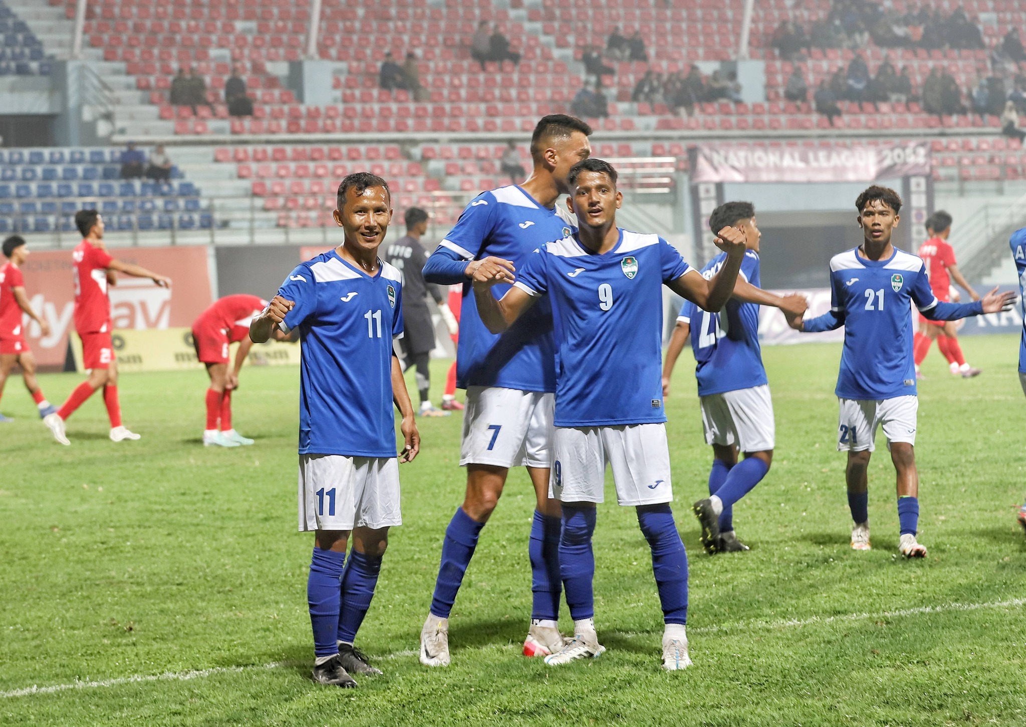 KATHMANDU – Dasharath Stadium hosted a high-stakes triple-header today. The matches featured clinical finishing, tactical discipline, and a frustrating stalemate for the league's heavyweights. Tribhuvan Army Club (TAC) and New Road Team (NRT) solidified their positions near the summit. Meanwhile, Manang Marshyangdi Club (MMC) ended the evening rueing missed opportunities. **Army March Past Struggling Nava Janajagriti** Tribhuvan Army Club opened with an efficient 3-0 win over struggling Nava Janajagriti Youth Club. The "Armymen" wasted no time asserting dominance—George Prince Karki broke through the defense and scored in the 9th minute to set the tone. The Army’s constant high pressure forced a turnover, allowing Nawayug Shrestha to double the lead in the 54th minute. Kunsang Lama struck in the 76th minute to seal the win, ensuring Army moves to 17 points from eight matches. Nava Janajagriti, still winless after eight straight losses, remain at the bottom of the table without a single point.  **NRT Overcomes Own-Goal Setback to Edge Chitlang FC** New Road Team (NRT) secured a crucial 2-1 win over Chitlang FC, though not without challenge. NRT took the lead in the 10th minute through Rajiv Lopchan, marking the game's first breakthrough. The match turned in the 37th minute when Sanam Sodemba Limbu's own goal brought Chitlang level. In the second half, NRT regained control: Timothy Chiemerie Okereke's precise strike in the 54th minute restored their advantage. This victory, their fifth, lifts NRT to 19 points from nine matches, while Chitlang stays in the lower half with 7 points.  **Stalemate at the Summit: Manang and Planning Boys Share Spoils** The floodlit finale failed to produce the goals fans expected, as Manang Marshyangdi Club and Planning Boys United played out a tactical 0-0 draw. Despite both sides creating half-chances, the defensive lines stayed organised for the full 90 minutes, with Manang’s best opportunity coming from a set-piece in the 65th minute, denied by the Planning Boys’ goalkeeper. For Manang, the draw feels like two points dropped in the title race. Planning Boys will likely view the clean sheet against MMC as a hard-earned tactical victory, having withstood late pressure. Both sides walked away with a point, keeping the mid-table battle tightly contested as the league heads into its next phase.