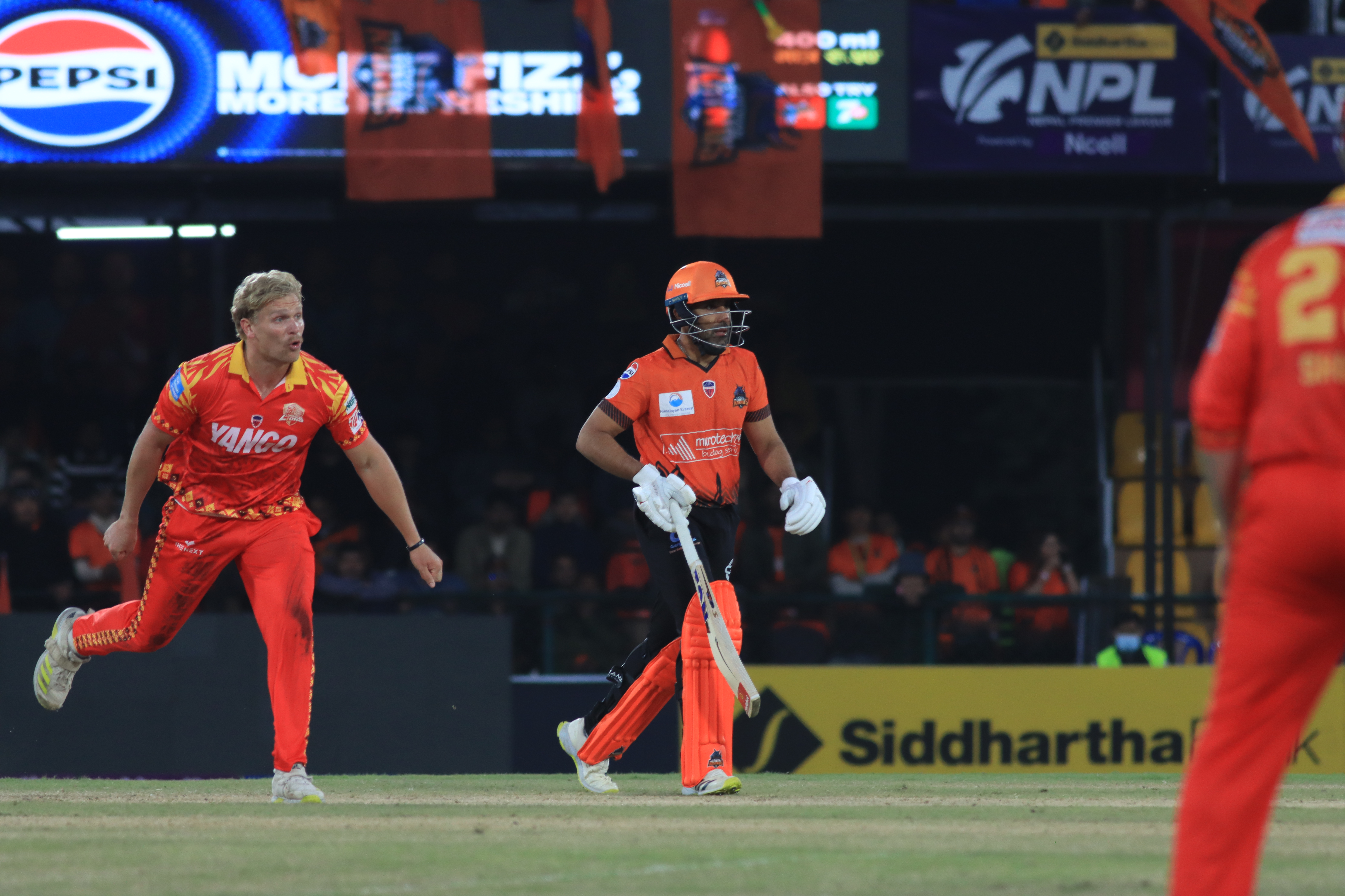 The chase began with a tactical surprise as Sandeep Jora was promoted to open alongside Australian international D'Arcy Short. While the experiment showed promise, Lumbini faced early jitters. Short (11 off 6) started aggressively with a boundary and a six but was bowled by Rijan Dhakal in the second over, shortly after surviving a dropped catch by Deepak Bohara. Jora looked sharp for his 28 but fell to a catch by Kushal Malla off Dhakal, leaving the Lions at 51-2 inside the powerplay. The middle overs saw a period of consolidation. Captain Rohit Paudel anchored the innings, stabilising the ship even as partner Dilip Nath was run out for 10. With the equation tightening to 70 runs needed off the final 60 balls, the game hung in the balance. The turning point came via the blade of Gulbadin Naib. The Afghan all-rounder, who was handed a lifeline when Sohail Tanvir dropped him on 29, made Chitwan pay dearly. Naib blasted an unbeaten 44 off just 24 deliveries, peppering the boundary with three fours and three sixes. Although Captain Paudel (39 off 44) fell to Tanvir with just two runs required for victory, Naib ensured there were no further hiccups, steering Lumbini home in 18.3 overs. For Chitwan, Rijan Dhakal was the pick of the bowlers with two wickets, while Tanvir claimed one.