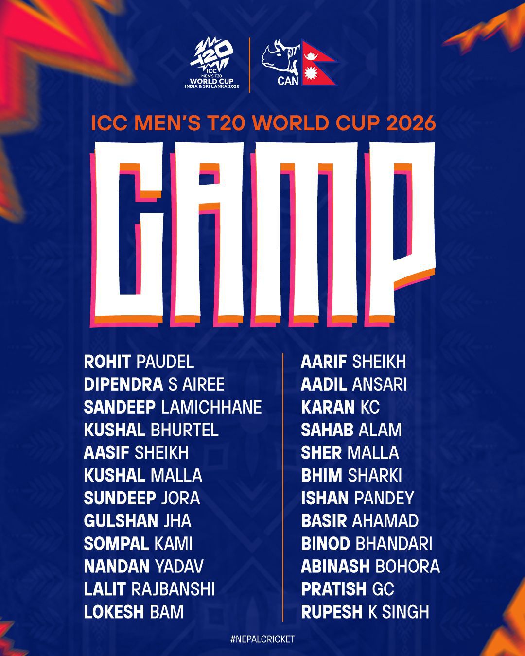The 24 players will now join a high-intensity training camp, where the group will be reduced to the final 15-man squad required by the ICC. Since co-hosts India have already announced their team, Nepal must decide on their final lineup soon.