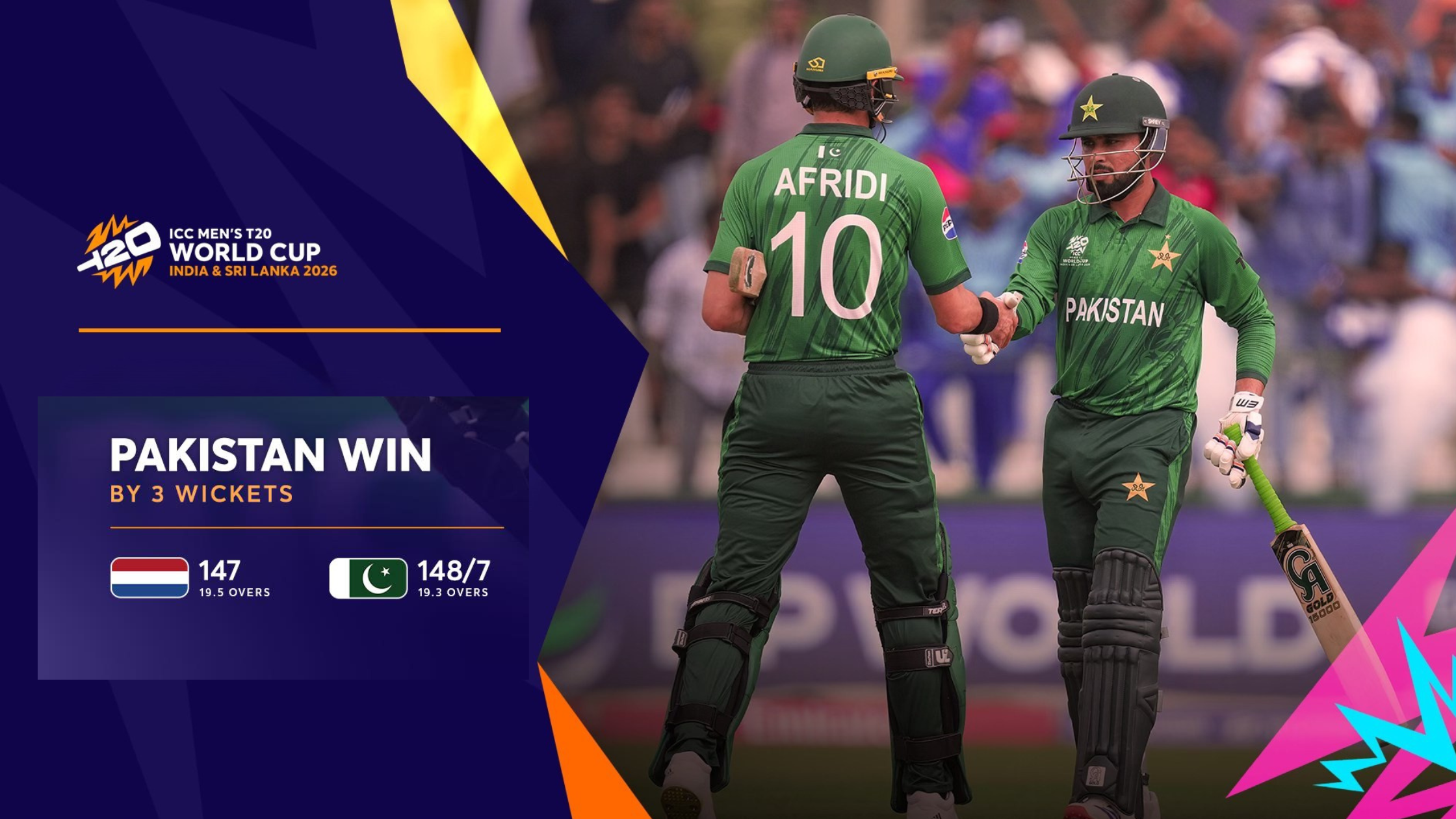 In Colombo, Pakistan survived a major fright to secure a 3-wicket win over the Netherlands. Chasing 148, Pakistan's innings nearly derailed. A mid-innings collapse was triggered by the veteran Roelof van der Merwe.