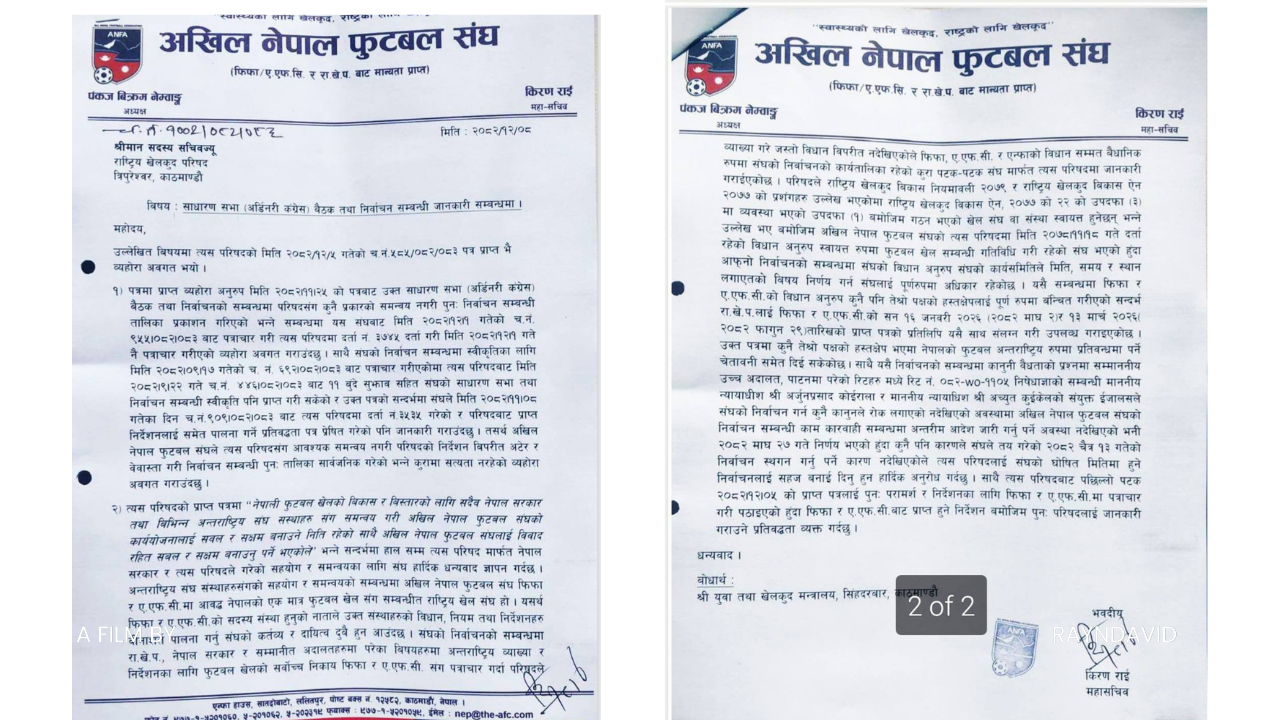 The dispute began on Thursday, when the NSC told ANFA to halt the election and provide a written explanation within three days. ANFA replied on time, telling NSC Member Secretary Ram Charitra Mehta in a letter signed by General Secretary Kiran Rai that the election process adheres to its governing rules.